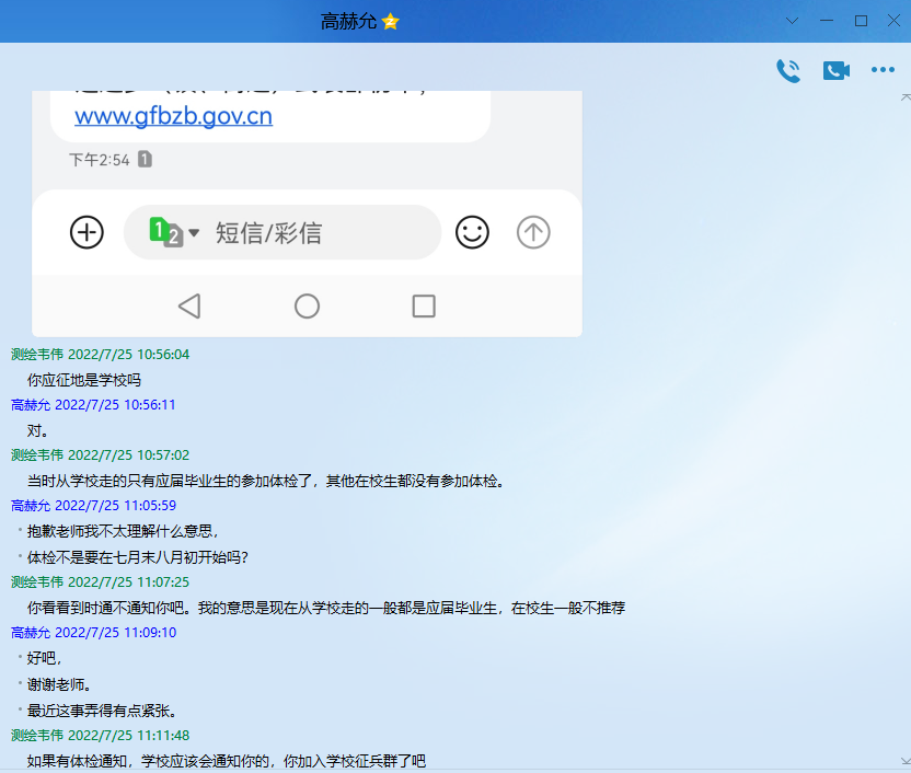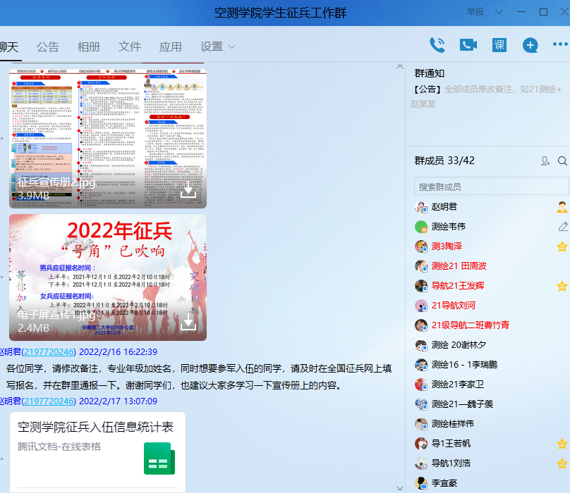 有一种大学叫军营,有一种青春叫无悔。一次选择,终身受益;一人入伍,全家光荣。为引导9499www威尼斯学生以家国情怀铸就责任担当,投身军营保家卫国。由于疫情期间的特殊情况,9499www威尼斯通过微信公众号推送发文、QQ群消息、谈心谈话以及线上政策宣讲等多种形式开展线上征兵入伍宣传活动。