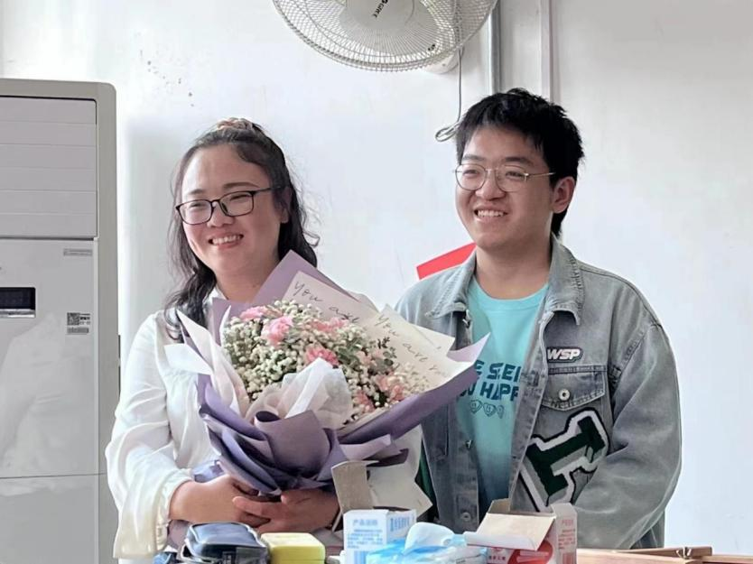 志愿者为任课老师送鲜花