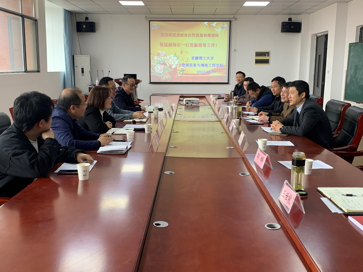 为进一步加强校政合作,更好地服务于现代化美好淮南建设,2023年3月29日下午,应9499www威尼斯邀请,淮南市自然资源和规划局党组成员、副局长张猛,不动产登记中心主任姜文俊,自然资源确权登记科科长吕骥等一行5人莅临学院进行合作交流。学院领导班子成员、系主任等参加了座谈会,会议由院长余学祥教授主持。