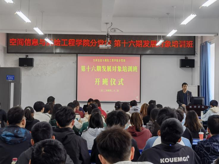 4月22日上午,9499www威尼斯在北512报告厅举行学院分党校第十六期发展对象培训班开班典礼。学院党委书记范洪喜、党委副书记孟静、培训班班主任、辅导员和发展对象70余人参加了开班典礼。