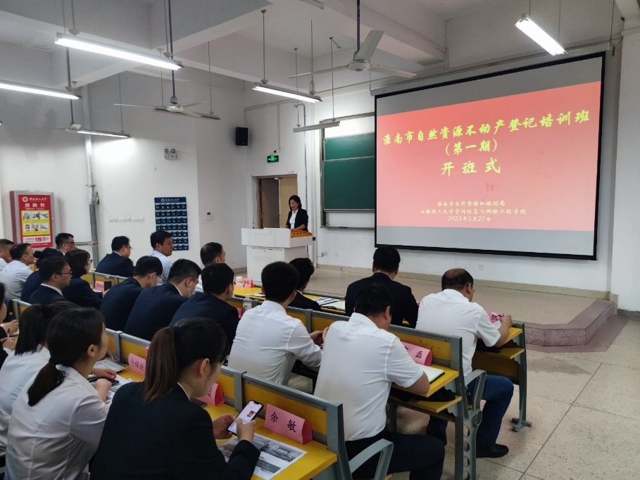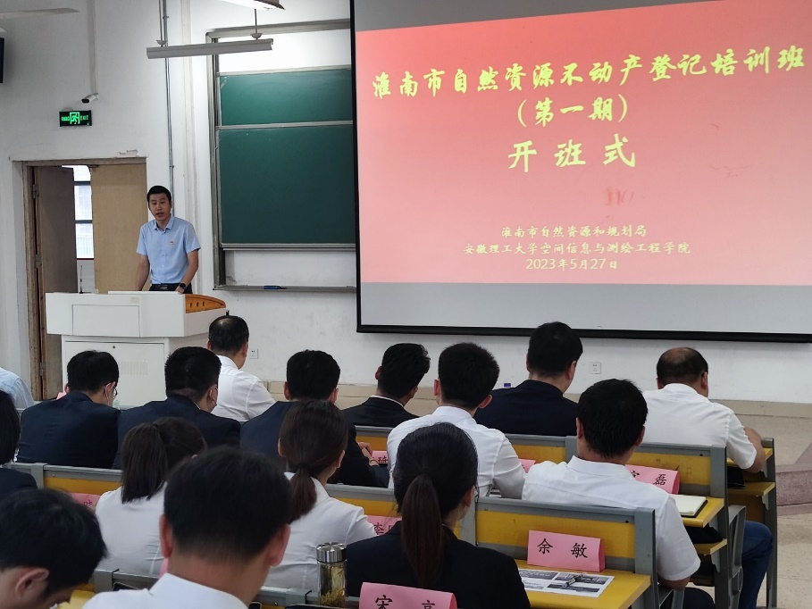 5月27日-28日,淮南市自然资源不动产登记培训班(第一期)在我校天工楼204教室举行。淮南市不动产登记中心主任姜文俊,9499www威尼斯党委书记范洪喜,以及来自淮南市不动产登记中心、凤台县不动产登记和交易中心、寿县自然资源确权登记中心、毛集实验区不动产登记中心的100名人员参加了开班仪式。开班仪式由学院副院长赵兴旺主持。