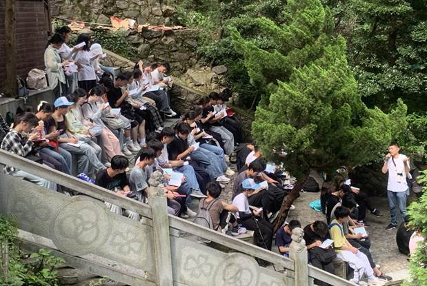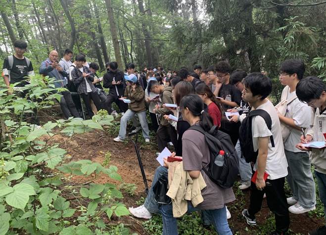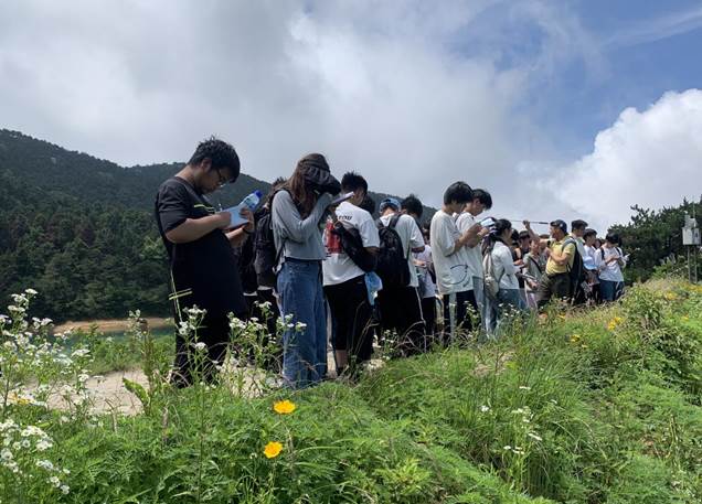 从蜿蜒曲折、人迹罕至的七里冲谷地,到静驻守望、内涵丰富的庐山博物馆;从云雾缭绕、险峻秀丽的五老峰,到飞流直下、连垂素练的三叠泉;从灿烂如织、花团锦簇的锦绣谷,到森林蓊蔚、曲线玲珑的如琴湖……在各有精专的老师们的引领下,同学们行走在各具特色的实习路线上。在领略庐山胜景的同时,从陡峭的野峰、参天的丛林、清澈的溪流和隐蕴其中的历史遗痕中挖掘出属于自己专业领域的瑰藏,在学习中领悟真知,在实践中创造新知。“行到水穷处,坐看云起时”的庐山生活,是行路,更是温书,既让同学们通过构造识别、地质勘查、土壤挖掘、红色教育等实践研究巩固了相关的理论知识,又培养了他们吃苦耐劳的品质、不畏艰险的精神、团结协作的意识、爱国爱党的情怀,真正做到了知行合一、内外兼修。