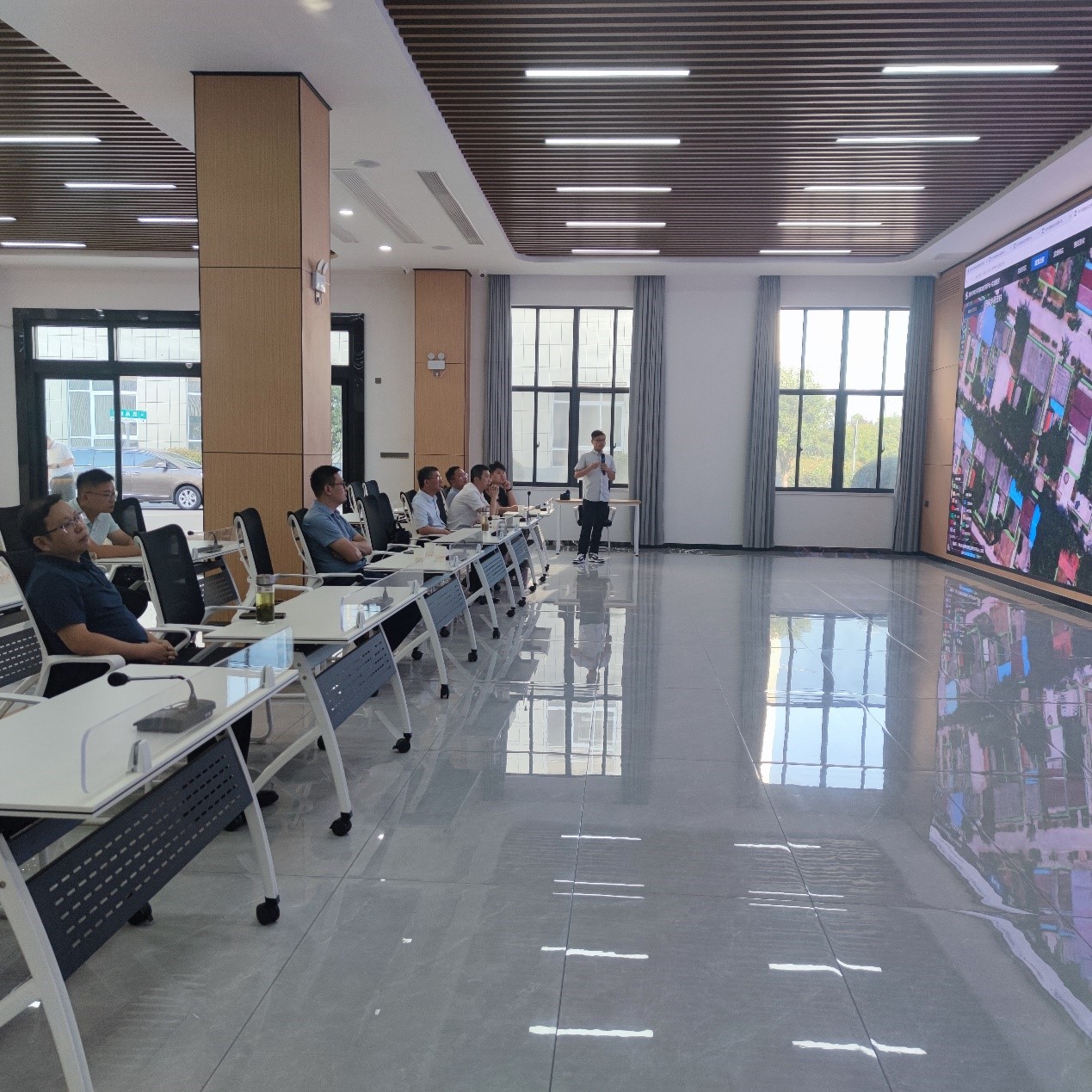 座谈会上,孟兆洋对范洪喜一行表示热烈欢迎,他介绍了公司发展规划、人员配置、科研生产等情况。范洪喜介绍了学院师资队伍、学科建设、人才培养和学生就业等方面的情况。余学祥介绍了学院科学研究、成果转化等情况。会上双方就实景三维、地灾监测等科研合作意向以及人才培养、实践教学与岗位需求等方面进行了深入交流。此外,学院一行还参观了明光跃龙地理信息科技有限公司的数字孪生实景地理环境平台案例项目和矿山修复项目。