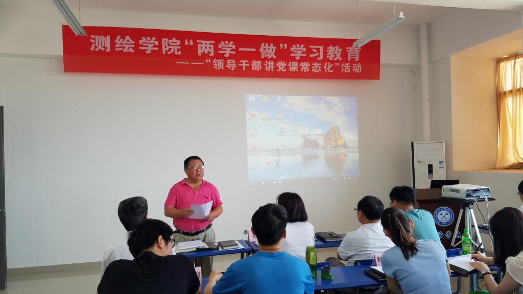 本次党课为测绘学院“领导干部讲党课常态化”系列活动的第一讲,之后学院所有党员院领导和支部书记年内都必须完成讲党课任务,另外为提高党课的教育实效,还计划邀请院外党建专家讲党课。