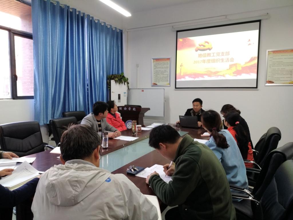 3月26日下午,地信教工党支部在南404会议室召开2017年度组织生活会、开展民主评议党员。学院党委委员、党委秘书袁彦到会指导。